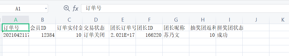 (2)導(dǎo)出拼團(tuán)活動訂單可以導(dǎo)出“抽獎團(tuán)返利”“抽獎團(tuán)狀態(tài)”