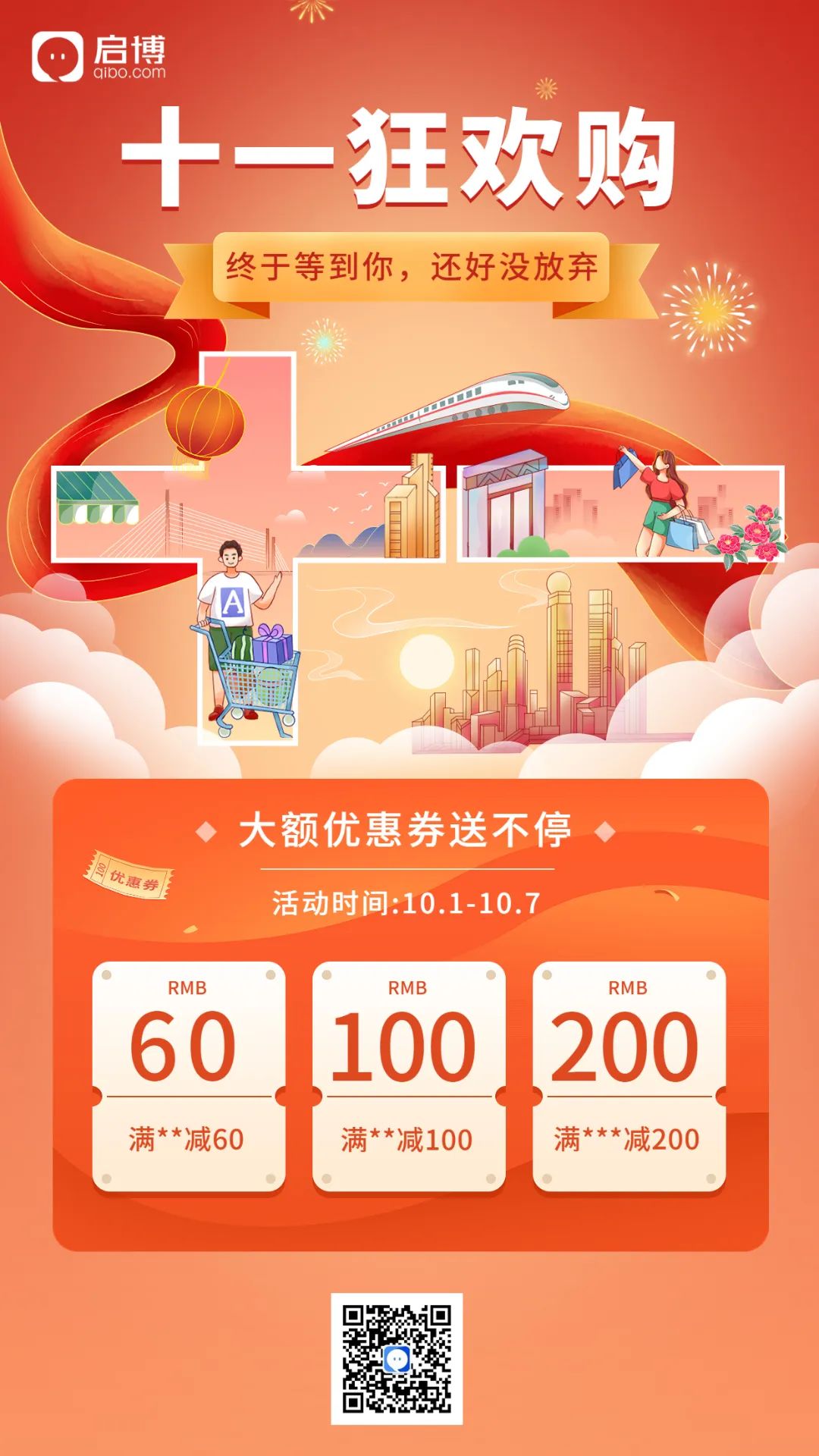 03 全行業:通過海報的方式宣傳國慶節日,普天同慶,主要做打折促銷類為主的活動來刺激銷量,提升銷售額。比如滿減、整點秒殺、滿額折扣等。