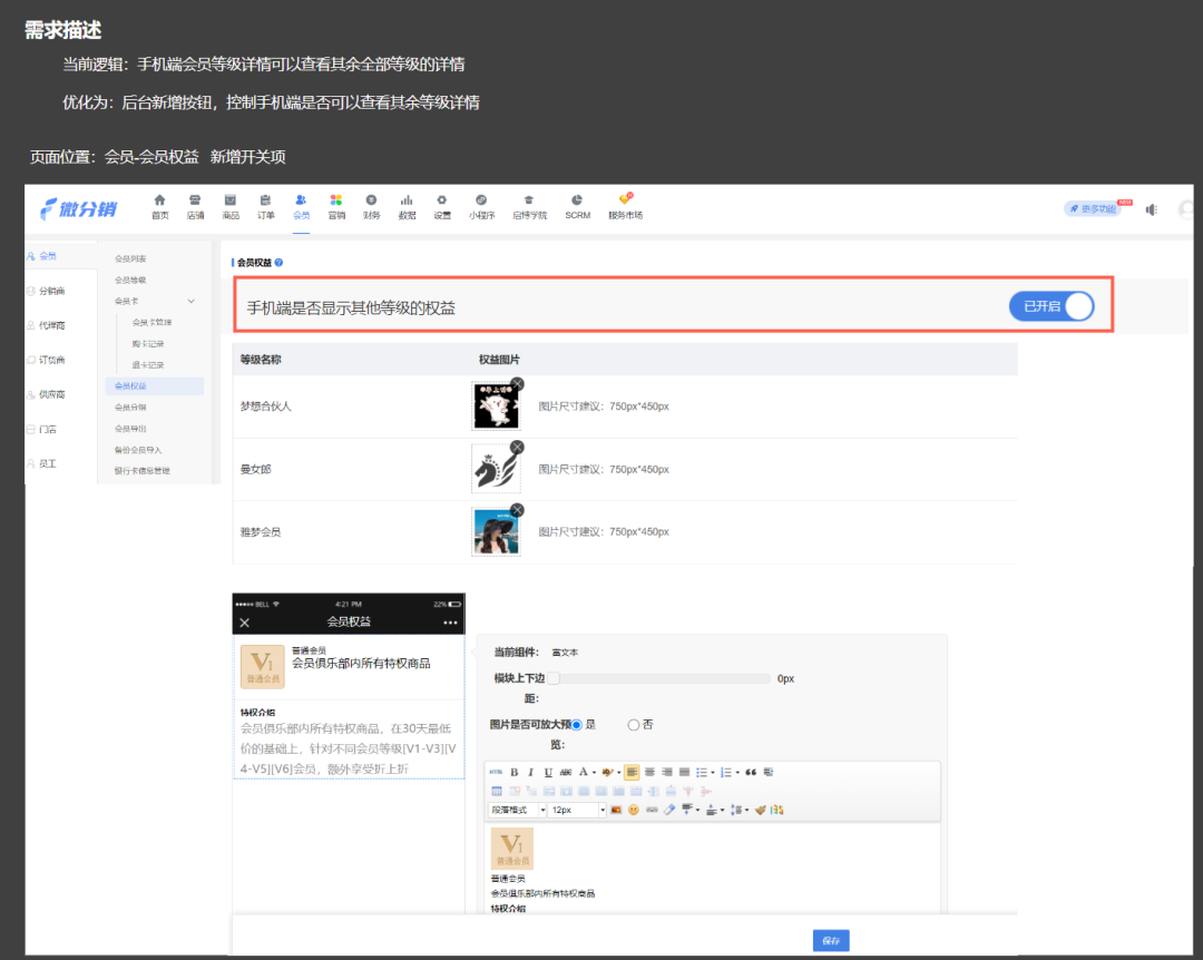 當前會員-會員權益(新增“手機端是否顯示其他等級的權益”開關項)