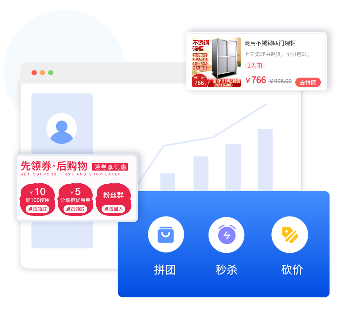 裂變拉新拼團、秒殺、砍價、群接龍等多種拉新玩法,實現商城粉絲倍增