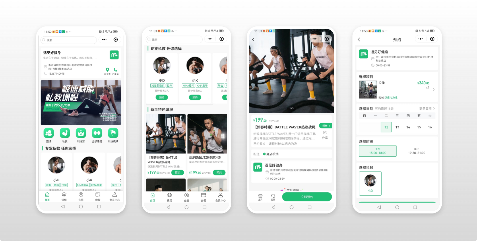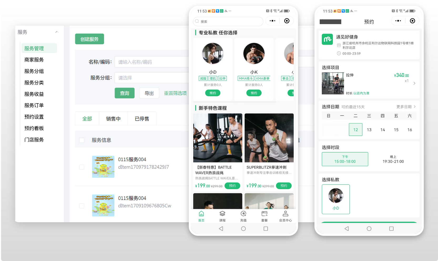 用戶端,可以通過小程序快速預約自己喜歡的課程與喜歡的私人教練;商家端,可以根據健身房的需要,上架相應的健身項目與一對一的私人教練課程。